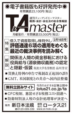 〈2月16日号(1111号)より〉 最新判決研究 関係法人間の資金移転における役員給与(源泉徴収義務)の認定と隠蔽・仮装 筑波大学名誉教授・弁護士・税理士 品川芳宣 未公開判決事例紹介 リヒテンシュタインの財団保有の法人にCFC税制 米国集団民事訴訟で和解金も、国外関連者への利益移転なし